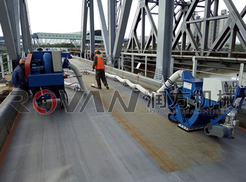 如果大麵積施工,拋丸的效率很高,總包交過來的施工基麵上,混凝土殘渣,疙瘩,油漬,汙染等,用人工清理,非常耗工,也清不幹淨,而用拋丸機則能很快解決問題,效率高。