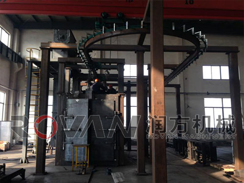 5、吊鏈式拋丸清理機:適合各種批量的中等鑄件的清理(如:發動機缸蓋、缸體、電機殼、齒輪、摩托車發動機殼體、五金工具等的清理強化)。