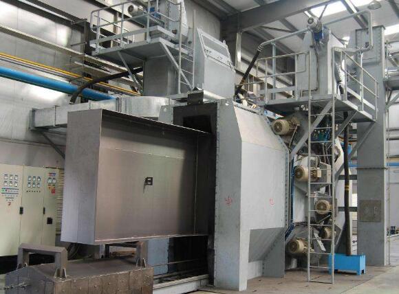 拋丸工藝是一種除鏽工藝。由於材質和成本的原因,汽車使用的厚度在3mm以上的鋼板多采用熱軋鋼板,而熱軋鋼板表麵普遍存在著氧化皮和鏽蝕,這嚴重影響後序塗層的質量和造成防腐性能下降,嚴重者導致塗裝困難,為此在塗裝前必須除去氧化皮和鏽蝕。以往大型除鏽均采用化學除鏽—酸洗除鏽。但由於酸洗除鏽環境汙染較大,逐步被鋼鐵和汽車製造業所太太,而采用拋丸除鏽。拋丸除鏽時利用高速旋轉的葉輪將鋼丸拋向鋼鐵表麵來達到除鏽目的,是一種對鋼材進行除鏽的較為先進的機械處理方法,不僅生產效率高而且具有費用低、自動化程度高、可實現流水線操作、環境汙染小的特點,被鋼鐵和汽車製造業廣泛采用。典型的拋丸工藝就是拋丸和(拋丸後的)表麵處理,單機是由帶除塵設備的拋丸機組成,生產線是由帶除塵設備的拋丸機和弓箭輸送設備組成。